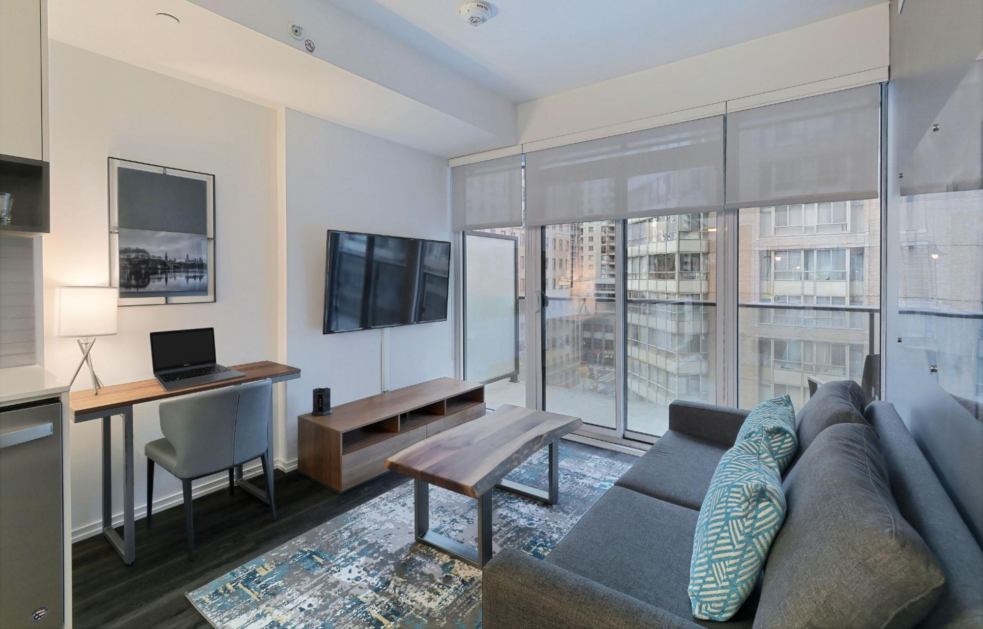 Suites suit both short visits and extended stays, offering space to unwind after full days in the city. Kitchens, living areas, and building amenities create a sense of home while keeping Toronto at the doorstep.